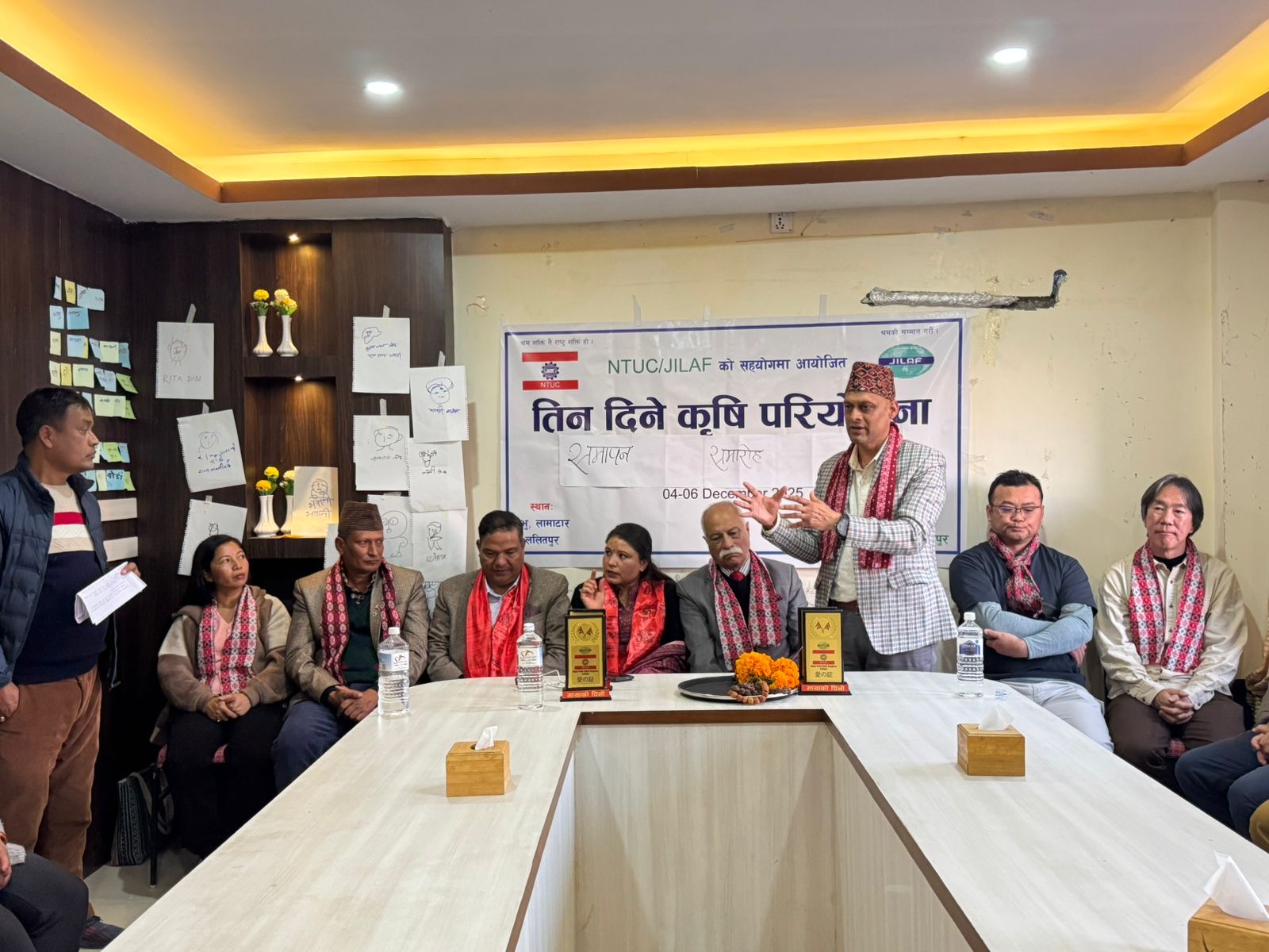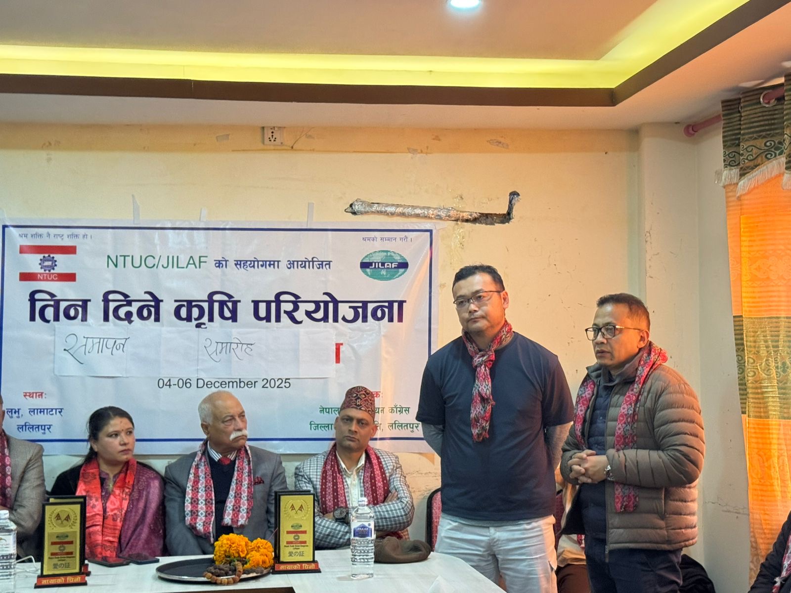 JILAF र नेपाल ट्रेड युनियन कांग्रेस (NTUC) ललितपुरको सहकार्यमा सञ्चालन गरिएको तीन दिने विशेष कृषि तालिम विजयी रूपमा सम्पन्न भएको छ। भक्तपुर र ललितपुरका विभिन्न पालिकाबाट आएका किसानहरूलाई प्रभावकारी तथा व्यावहारिक कृषि सीप प्रदान गर्ने उद्देश्यले आयोजित तालिममा उल्लेख्य सहभागिता देखिएको थियो।