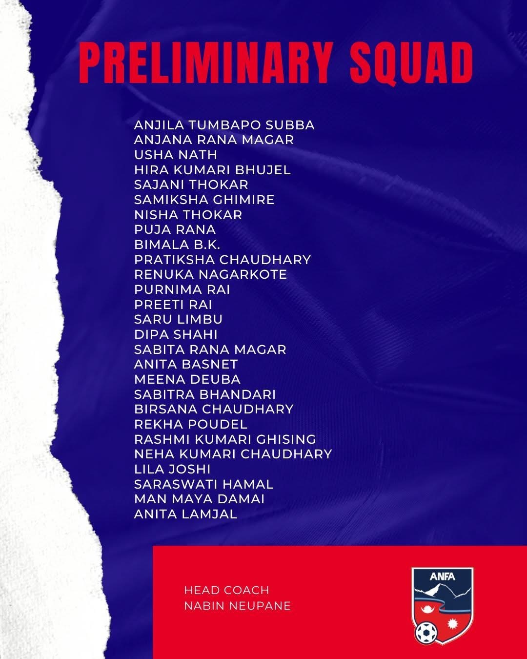 प्रमुख प्रशिक्षक न्यौपानेले नयाँ खेलाडीहरूलाई अवसर दिँदै अनुभव र युवा संयोजनमा आधारित टोली चयन गरेको बताएका छन्। प्रारम्भिक टोलीबाट अन्तिम २३ सदस्यीय टिम प्रशिक्षणपछि घोषणा गरिने जनाइएको छ।